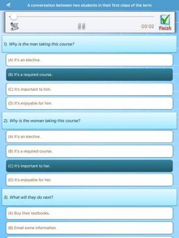 In the case off exercises you will have a timer in order to see how fast you can complete everything. You can use our TOEFL Practice Test to really simulate the exam and rest assured that once you complete all that our app has to offer you will have no problem passing the exam with flying colors. Download TOEFL Practice Test right now and prepare for the TOEFL exam in the proper manner!
