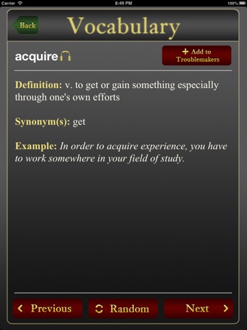 So many apps make big promises about useful vocab but they dont deliver. I was really pleased with the selection of words and the troublemakers part is awesome. Convenient way to brush up on sat vocab!