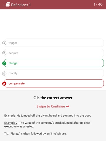 Its time to master those challenging words! Improve your TOEIC score by expanding your English vocabulary using the most comprehensive preparation app out there. This free app with in-app purchases is packed with an complete set of word definitions quizzes and sentence completion questions specific to the TOEIC test. At the end of each quiz is an evaluated score, which you can later improve.
