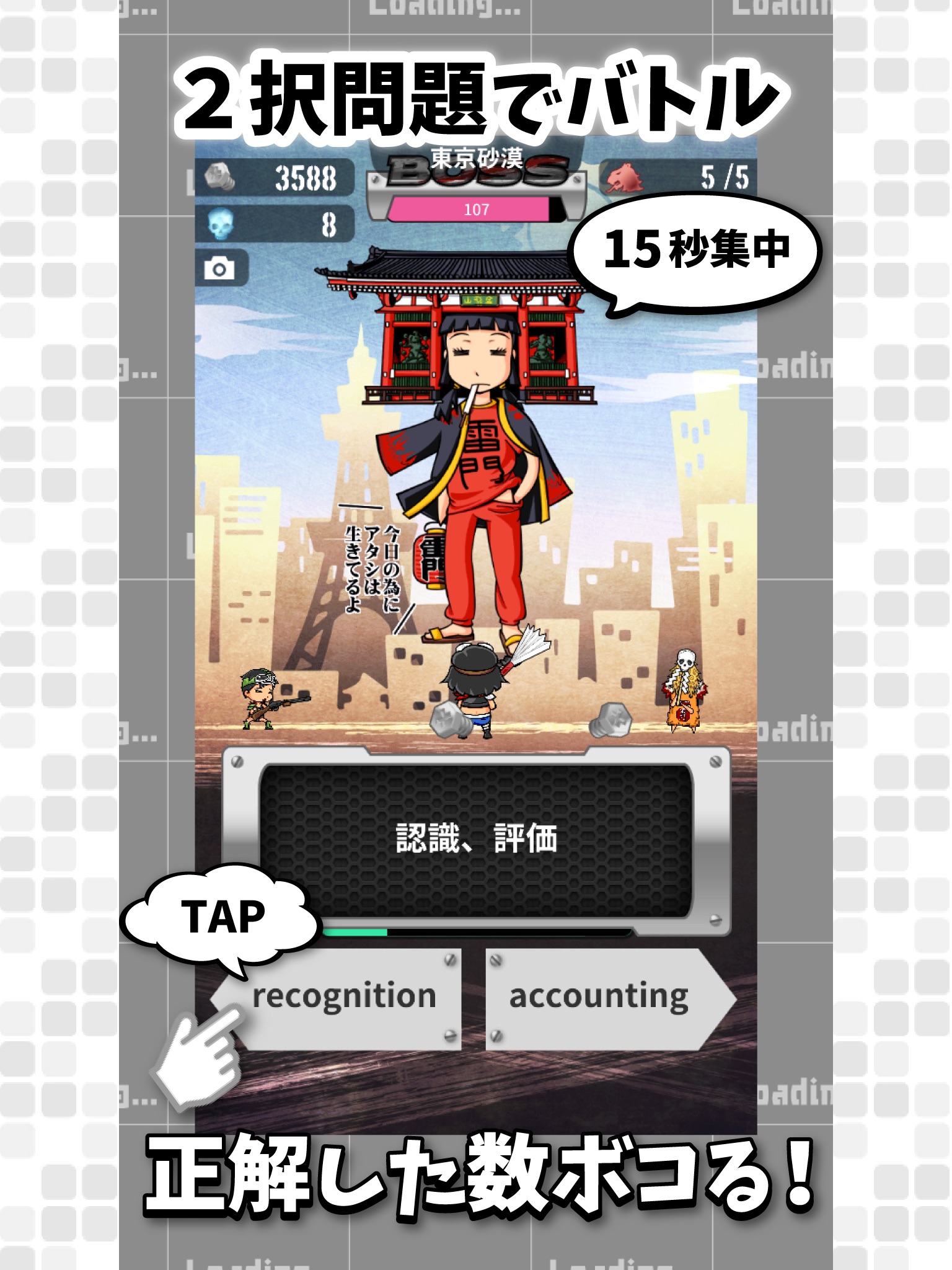 答えた数だけ敵をボコれる単純なバトル。