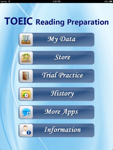 TOEIC Reading Collection enables you to learn and practise Reading - Understanding Skill easily to prepare for the coming TOEIC Test. The giant store of TOEIC Reading Collection provides more than 7000 questions in the form of Multiple Choice Question, designed in the exercises form of a real TOEIC Test. That will help you to get aquainted with this Examination quickly. TOEIC Reading Collection includes three forms of exercises: Reading Comprehension, Incomplete Sentences and Text Completion with questions based on real-life work settings in an international environment such as meetings, travel, telephone conversations,...