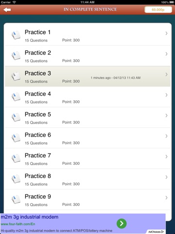 The more you practice, the higher your points increase.