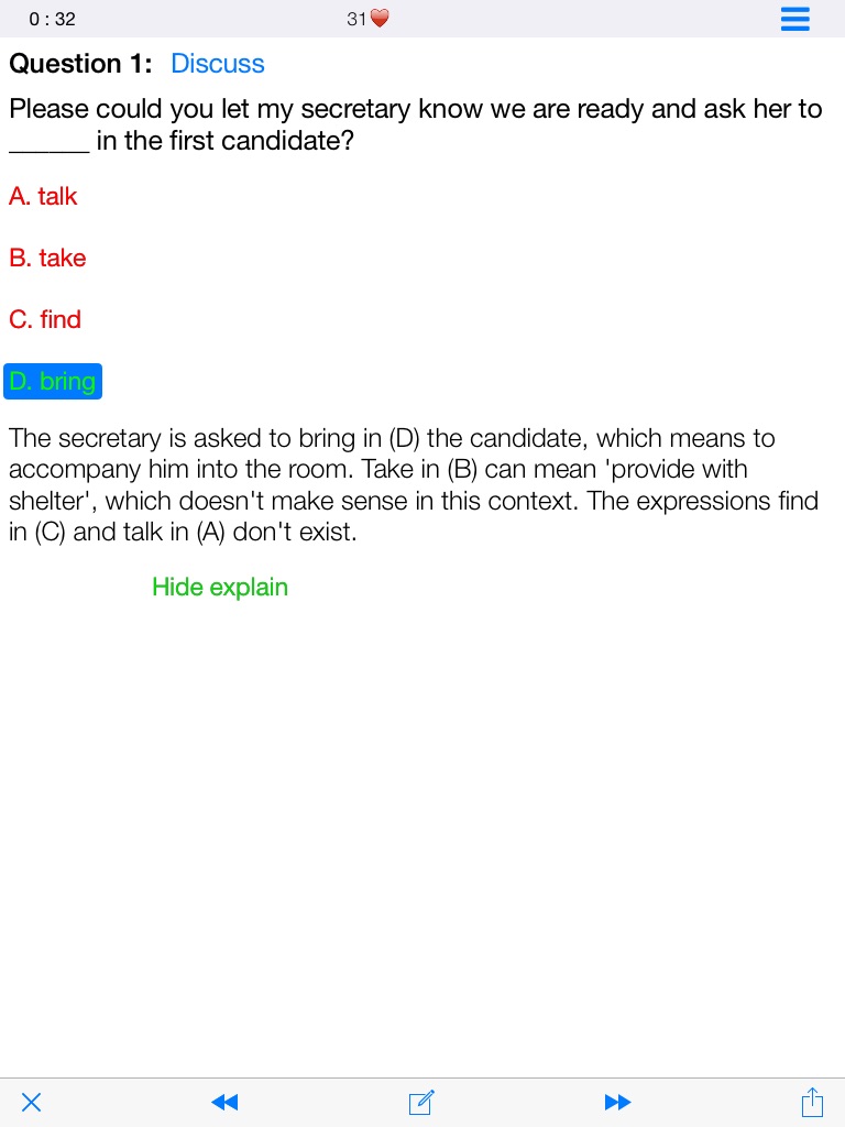 - App provides questions and answers with explanations for each question, help students understand and grasp knowledge of grammar.