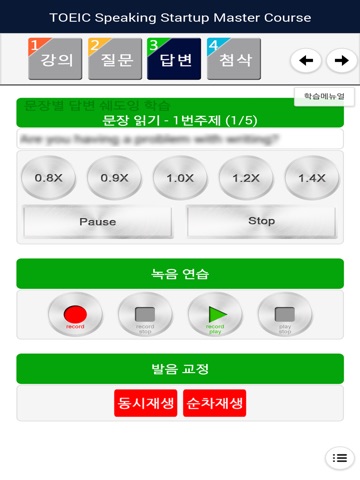 답변녹음해 보고 만족한 답변을 제출 후(단, 첨삭 학습자에 한함)