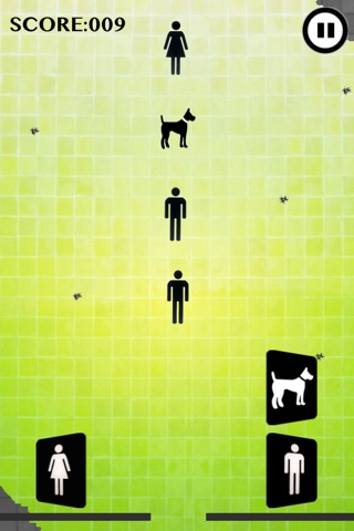 Swipe people as fast as possible into their matching restrooms. The faster you assign the restrooms the more points you earn. The difficulty of the game increases as time progresses.New categories start appearing, moving, changing their positions.