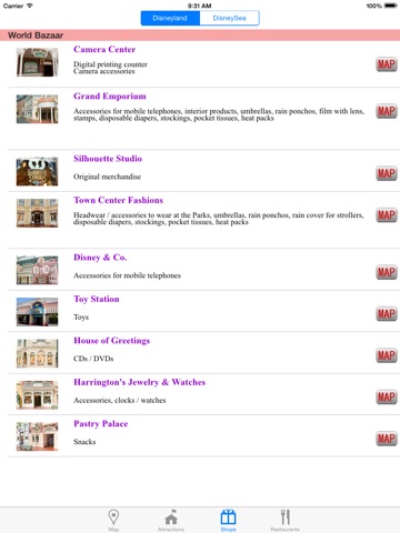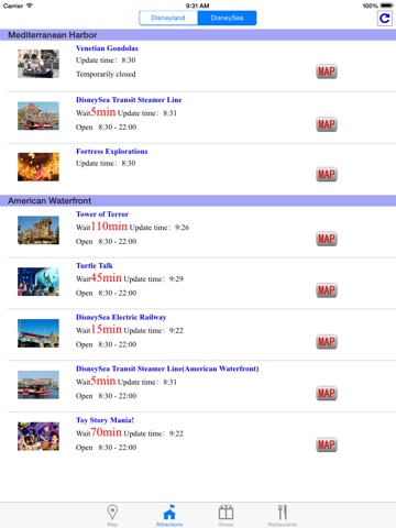This app displays the wait times and facilities maps for Tokyo Disneyland and Tokyo DisneySea.
