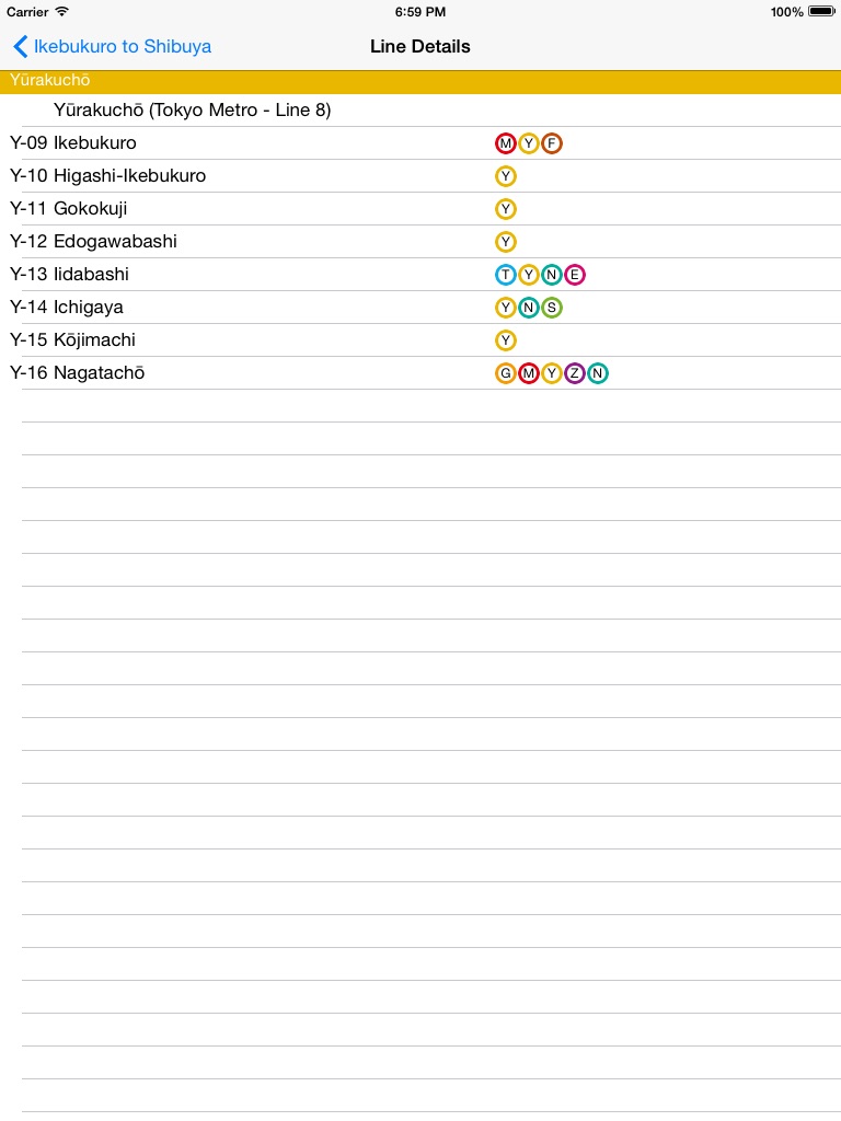 You can also view the detailed station list for each train line in Tokyo. You can long press on any station name from the list to see it on maps.