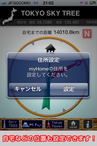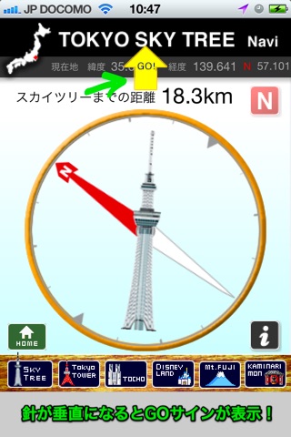 The distance from the compass present location which teaches not north but the direction in Tokyo Sky Tree is also known.