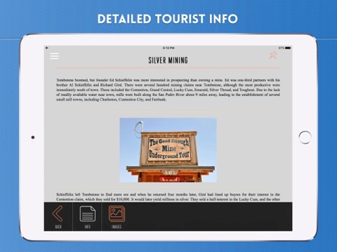 Unlike other guides, eTips Travel Guide provides you with interactive zoomable OFFLINE MAPS (x6 zoom + GPS capable) of the region showing the attractions, public bus stops, restaurants, pubs, hotels, hospitals and many other useful points of interest. You cannot get lost!. With this guide, you will not only visit the city but also move around its region.