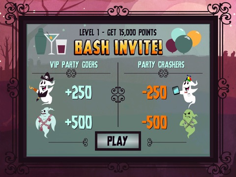Welcome to TombTown where a local Halloween bash is being held, and we need your help! Visit different sections of the town to invite the local ghosts to the party, but be careful! There are party crashers that will try to score an invite, so make sure to avoid them! How high of a score can you achieve? Throw the biggest party that this town has ever seen and be remembered as the king of the party scene!