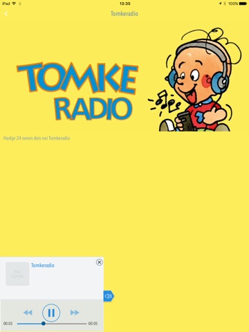 Tomkeradio is der foar bern tusken de 2 en 7 jier âld. De hiele dei binne der sawol ferskes as ferhaaltsjes te hearren op it ritme fan de dei. Dat betsjut: moarns ferskes en ferhaaltsjes foar de lytste bern en middeis ferskes en ferhaaltsjes foar de wat gruttere bern. En wa lêst der fan ‘e jûn foar? Tomkeradio fansels! Om bêdtiid hinne binne der in oere lang Tomke ferhaaltsjes te hearren op de stjoerder.