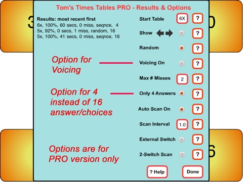 The PRO version of Toms Times Tables is for teachers and users with special education needs, including AAC users and those with orthopaedic impairments.