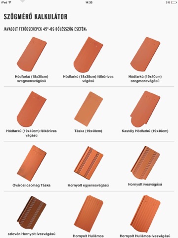 A SZÖGMÉRŐ funkció segítségével egy pillanat alatt le lehet ellenőrizni egy tető hajlásszögét, és az alkalmazás megmutatja, hogy mely TONDACH® cserepek alkalmasak az adott tető fedésére. Meg lehet nézni a tetőcserepek felületi fotóit, és alapvető műszaki információk is megtalálhatóak róluk.