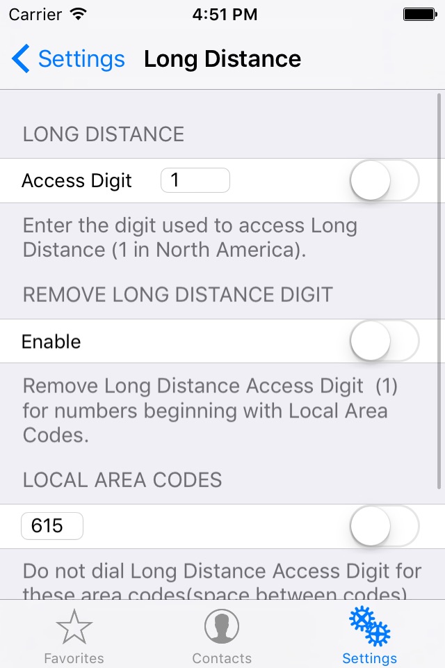 Tone Dial includes several options to "adjust" the numbers in your contacts to work correctly over the land line. For example it can convert numbers starting with "+" into country exit codes so that international calls can be made correctly. It also has options to add or remove "1" from numbers outside your local area code.