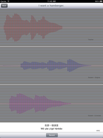 - Simultaneously show audio waveforms of teachers voice and students original/corrected voice for comparison