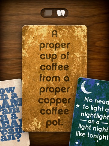 TongueTyers is a brand new way to EMBARRASS YOUR FRIENDS and YOURSELF! Think youve got a DEXTROUS TONGUE? Think again! Flip through these classic and contemporary tongue twisters with two animated views. You can try not to laugh, but it wont work. TongueTyers has fifty tricky tongue twisters laid out on cards by a REAL GRAPHIC DESIGNER- theyre not just fun to say, theyre easy on the eyes too.