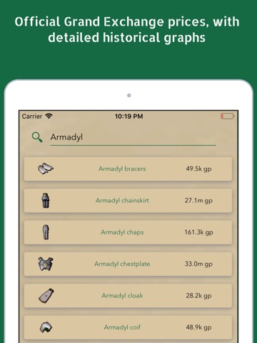 - Item prices using the official Grand Exchange API, including historical price graphs