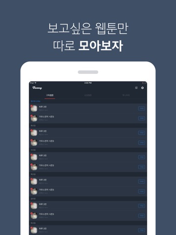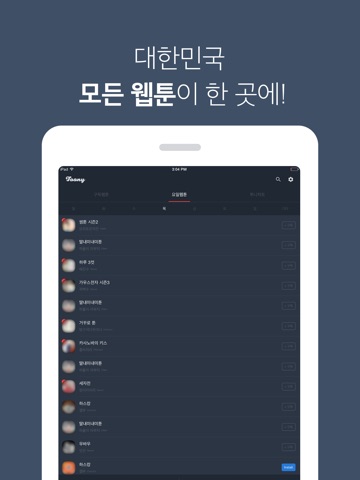 - 주요 인기채널 웹툰을 요일별로 한번에 제공