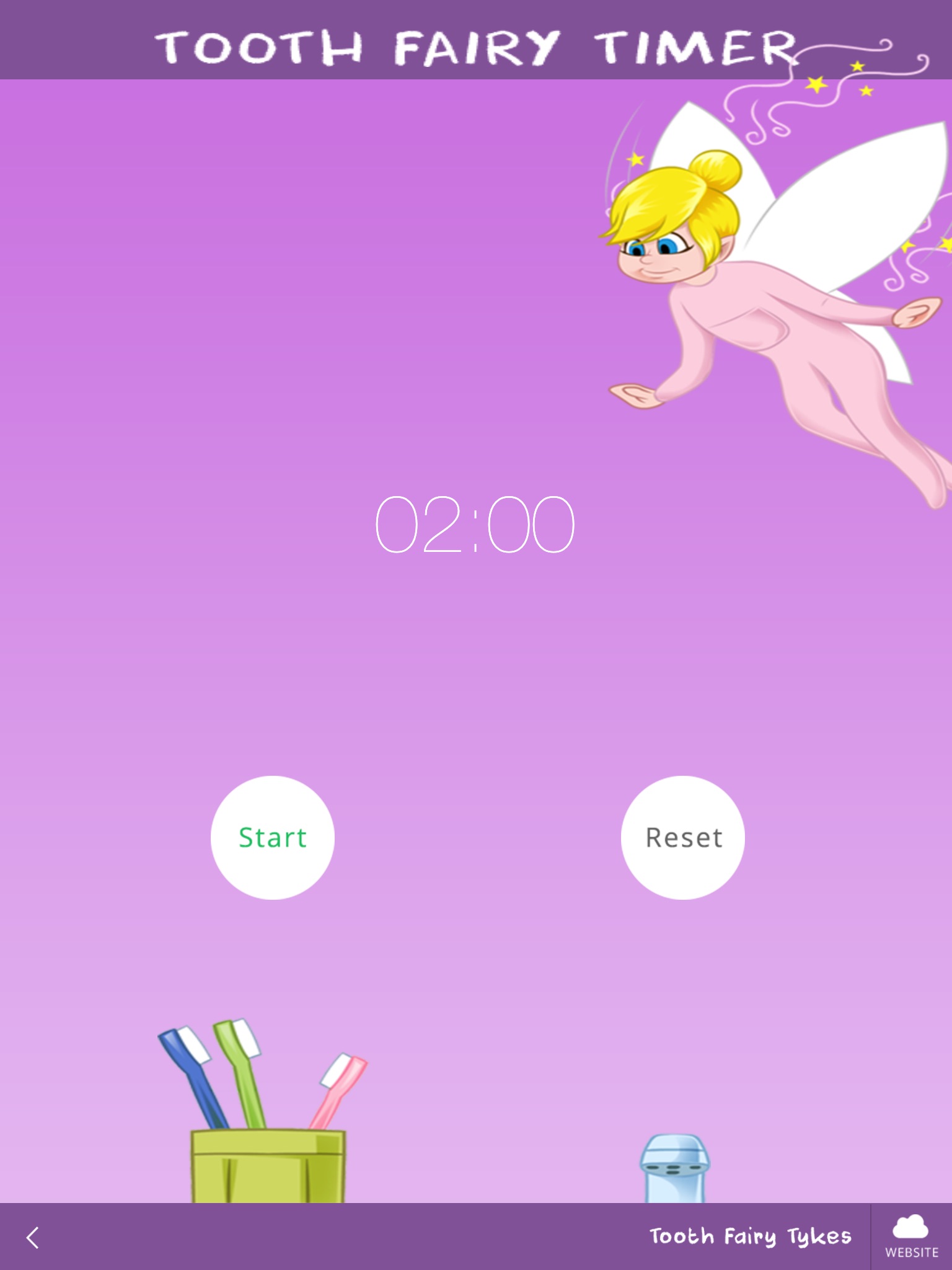 Press the start button to begin the timer and when the 2 minutes are up, your child will be rewarded with a happy tune! Make brushing a fun and healthy habit with the Tooth Fairy Tykes new Tooth Fairy Timer app!