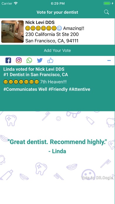 Vote your dentist #1 and share your vote on Facebook, Instagram, WhatsApp and Twitter.
