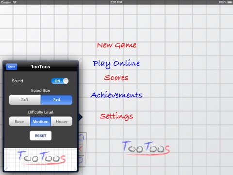 Advanced Tic Tac Toe game - play on board size 3x3 and 3x4 and play online against real users