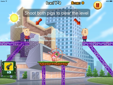 I hope you like pigs and killing them cause this game has a lot of that pig pig squawk piggishness. But never mind, but mind your skills. These pigs are tricky. They hide and dank and camouflage so you cant really shoot them that easily. But thats where your creativity comes out. So I need to worn you. The game is crazy hard, but dont get to carried away, if you cant figure out one of the 200 levels. Dont refuse to eat or skip your breakfast or any crazy thing like that. Dont get your mama upset. I have taken care of a situation of that kind by providing you with a cheat sheet for every level. So DOWN THIS GAME NOW! Play till your fingers hurt and you your eyes are hanging on a hanger. But most of all have a lot of fun!