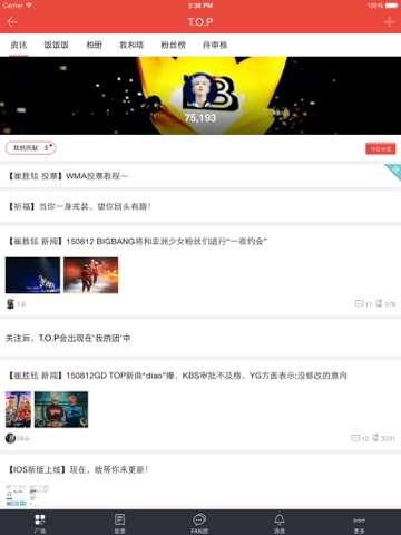 -饭团 和同样喜欢T.O.P崔胜贤的粉丝抱成团,大家一起聊天、分享对于T.O.P崔胜贤的爱