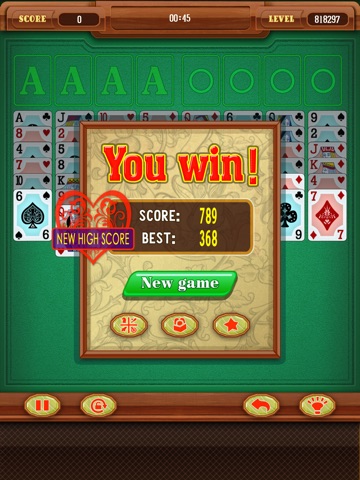 FreeCell is a very popular Windows Card game in the world. We carefully designed this game for ios users, and strive to bring the best games to players. The game has a lot of features, such as support portrait/landscape orientations and lock orientation, support many levels to select, support change background, support hints, undo, autosave, timing, scoring, statistics and so on.