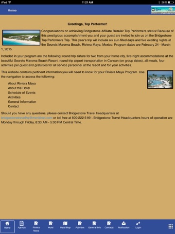 Make the most of your Bridgestone Affiliated Retailer Top Perfomers trip to Riviera Maya, Mexico by downloading this app. You will gain instant access to all important details and ensure that you have a great time in Riviera Maya, Mexico.