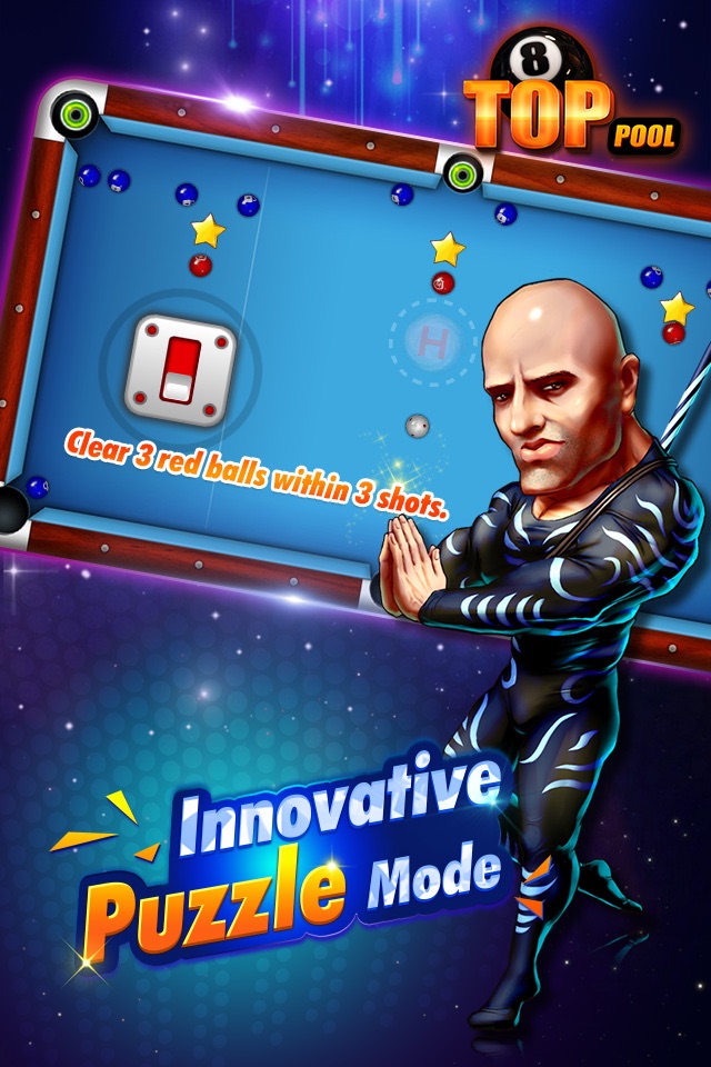 Play with real people in real time. Add your opponents as pool friends. Challenge your friends anytime. Just download Top Pool, and show off your skill now!