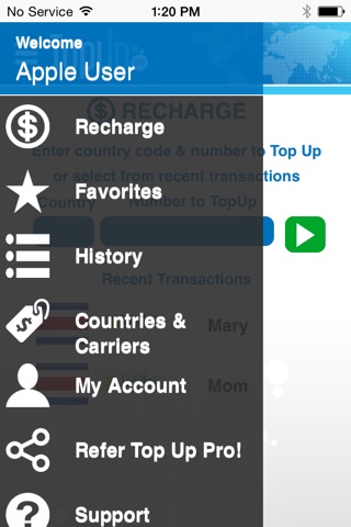 Have you ever needed to recharge the balance on your or a friends mobile phone? Now that process just got a lot simpler. With Top Up Pro, your recharges are a tap away. With a favorites list integrated to the app, daily promotions, and the ability to recharge anyone in your contact list is literally just a tap away. We do all the hard work of formatting the number and finding out what country it is in and even what company it is assigned to. We make it simple and give you the options to recharge, it is that simple. Recharges arrive in seconds with our top-of-the-line international delivery system. You can rest assured that your recharge will be received instantly.