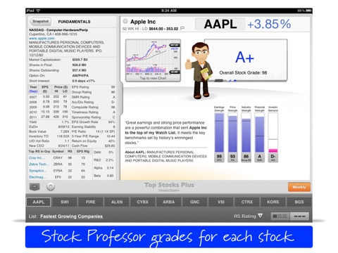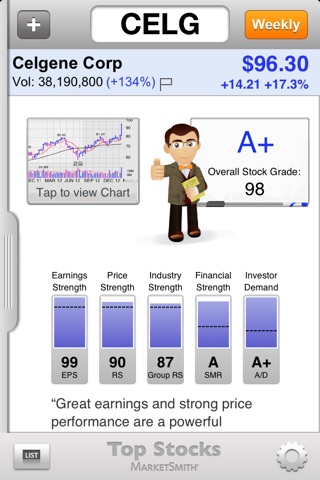 Top Stocks was created by MarketSmith—a powerful desktop research platform for advanced investors—so Top Stock’s “Idea Lists” and “Stock Evaluation” features are powered by professional-level fundamental analysis, technical analysis, and historical research. It also means that your learning path can naturally flow from Top Stocks to MarketSmith, where you get everything you need to master the world of investing and participate confidently in it.