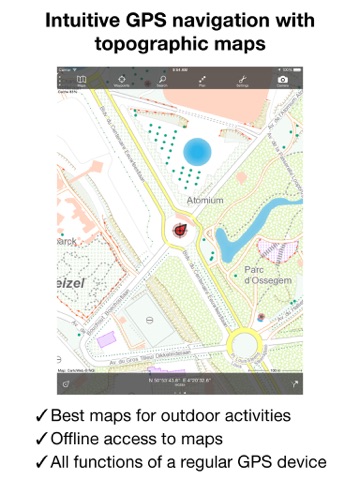 Makes from your iPhone/iPad a complete GPS device including a route planner based on the detailed Cartoweb topographic map from Belgium. The maps can be saved on your iPhone/iPad, so that Topo GPS can also be used without an internet connection.