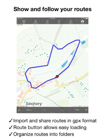 * Sharing recorded and downloaded routes in .gpx format via e-mail, Facebook, Twitter and with Topo GPS.