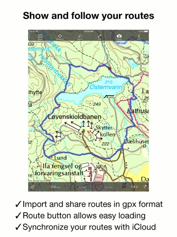 Makes from your iPhone/iPad a complete GPS device with the detailed topographic map of Norway. Viewed maps will be stored on your device so that Topo GPS can also be used without an internet connection.