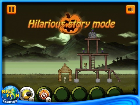 The Pumpkin King has come, brought chaos upon the land and robbed the princess of her kingdom. She must fight to win it back in an ALL NEW Toppling Towers game with the same hilarious sense of humor. In this free version, enjoy 5 levels of SINGLE PLAYER action. Want to face the Pumpkin King with an army of players? In addition to helping the princess win back her land, the various neighboring kingdoms have been driven mad and are attacking one another! Test your skills with our new PASS AND PLAY multi-player mode! We had so much fun upgrading the game we didn’t stop there - look for awesome new spooky animations and rag-doll physics too!
