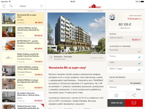 Aplikácia má dizajn optimálny pre všetky zariadenia, zvlášť pre obrazovky iPad a iPad Pro na praktickú prácu s filtrom, zoznamom a detailom inzerátu.