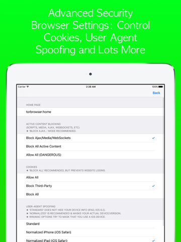 - Ability to use Tor bridges (Refer to https://bridges.torproject.org for more info)