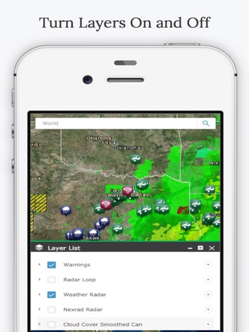 Tornado Tracker Weather Radar was developed by Severe WX Warn and contains features such as storm signatures(tornado vortex signatures, hail storm signatures and damaging wind signatures.) The app also includes storms reports for tornadoes, damaging winds and severe hail. Along with this the app also includes lightning strike data, active hurricanes and tropical cyclones, global surface winds, cloud cover and NWS watches, warnings and advisories. All data feeds are direct from NOAA, NWS and the SPC.