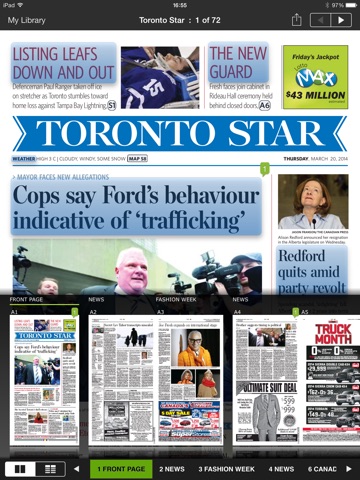 With the Toronto Star ePaper, you can read the Toronto Star online in its true printed format from anywhere in the world. Along with the newspaper-like feel of flipping through pages and sections, you can also use electronic enhancements such as keyword search, or access editions of the newspaper from up to 6 months prior. Plus, the ePaper edition is social; you can share articles, from a trusted source, with friends and colleagues via Facebook, Twitter, and email.