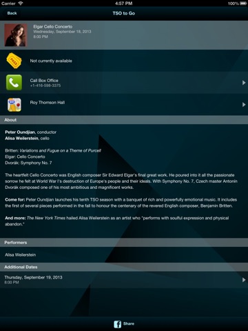 My TSO is your digital, mobile companion to the Toronto Symphony Orchestra. Now you have access to the TSOs events anytime, anywhere.
