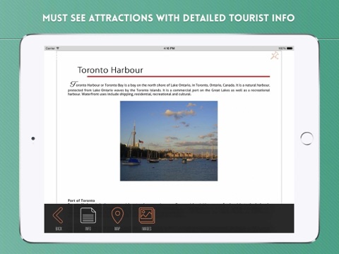 AUGMENTED REALITY, unlike other tourist guides you will be able to discover the city with the best iPhone and iPad tool - AR - Just click on the AR button, turn yourself 360° and view on the screen where the best spots are and how to find them. You can also scroll up and down to view the closest and furthest attraction.