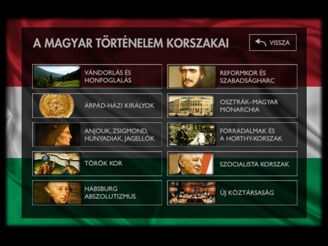 A legjobb magyar történelem mobilon. Az app ingyenes alap változata tartalmazza a tíz fejezetet időszalagokkal és képekkel a Honfoglalástól napjainking.