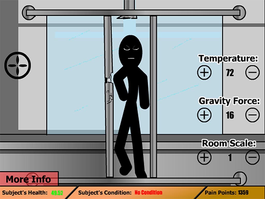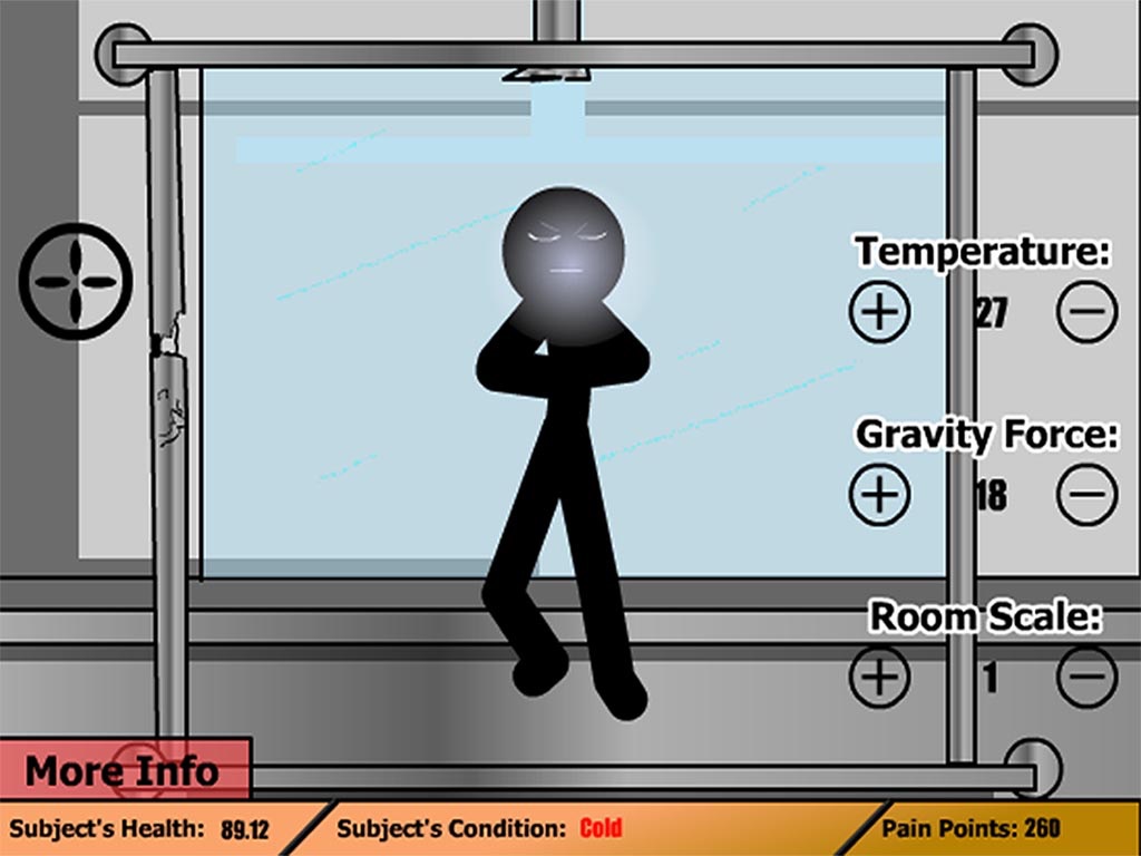 More than just a point and kill game. You are responsible for causing as much pain to your subject as humanly possible. Causing pain awards points, unlockables, and victory. Control several aspects of the Torture Room to make your subject suffer, from temperature to gravity strength. Enjoy!