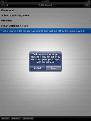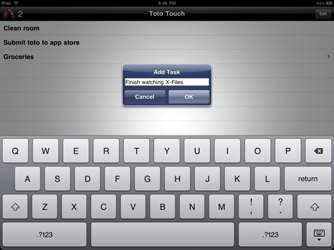 Toto lets you add tasks faster than any other app in the app store. Type and tap, its that easy.
