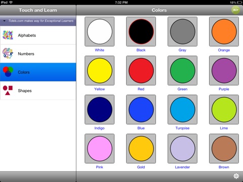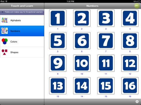 Tidels.com A Touch and Learn - Alphabets, Colors, Numbers and Shapes app is a simple free app for Kids worldwide to learn elementary language skills. The App shows alphabets, numbers, colours and shapes with a list of pictures and touching the picture the voice gets played. The text of the picture can be turned off to create a test scenario.