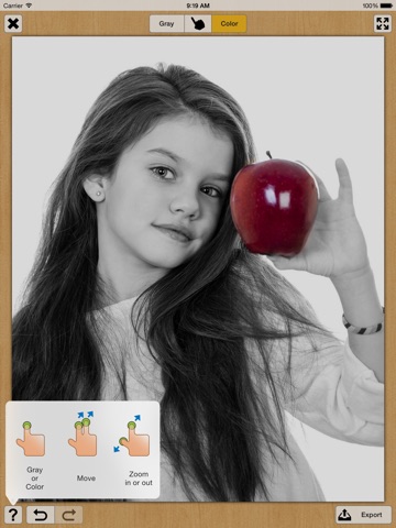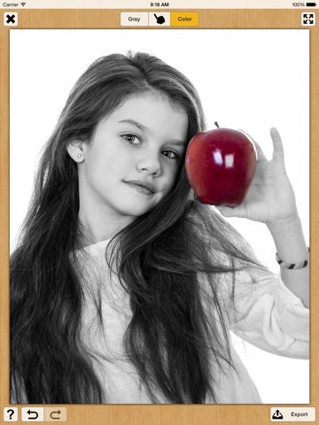 Make part of a picture color and the rest of it black and white with a touch of your finger.