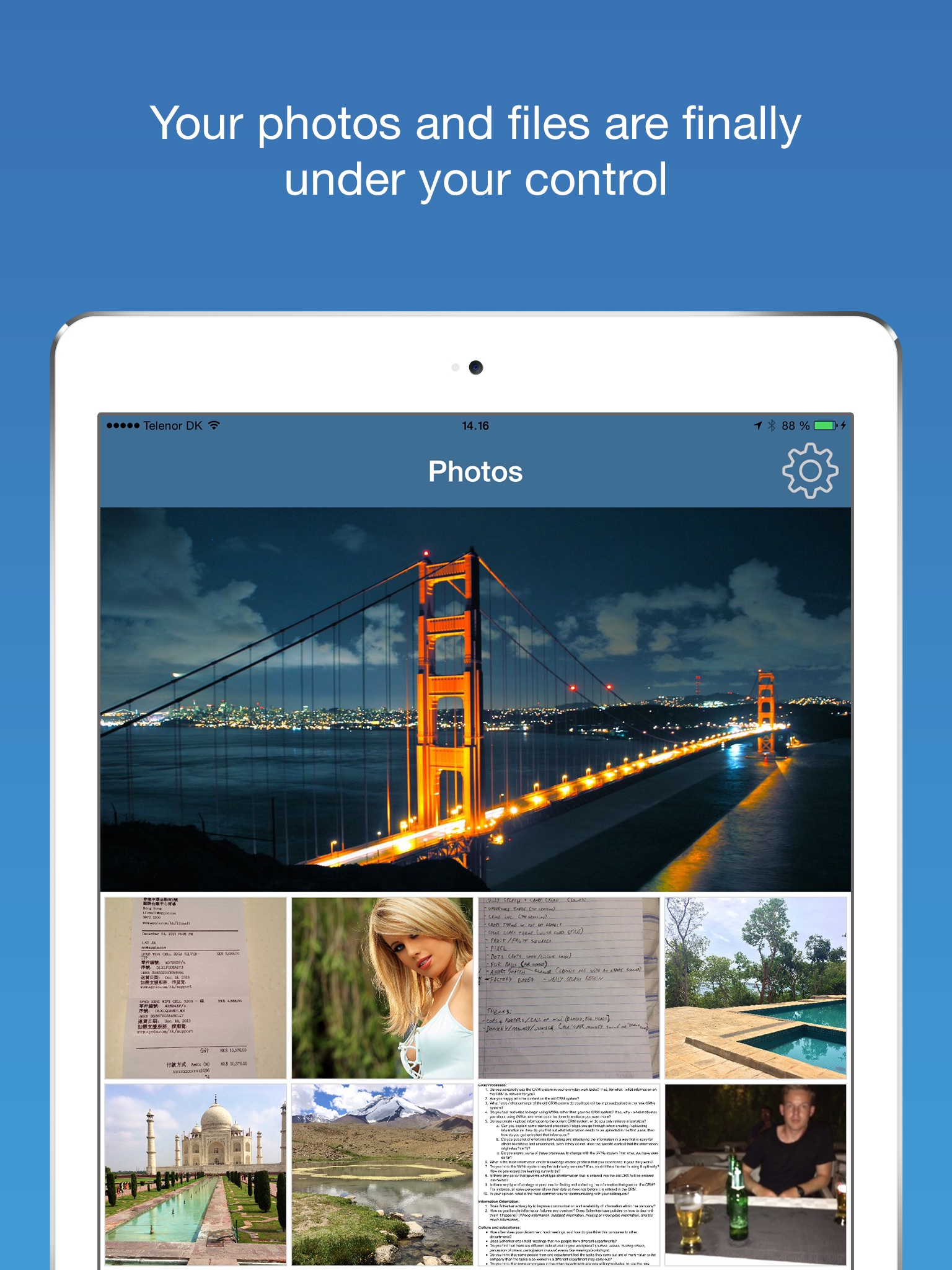 I havent tried using pictures etc. Ive just been frustrated with this app because the main reason why I bought this app was because it works with using the touch, instead of only the passwords. Its the opposite the touch doesnt work. My iPhone is the 6s+ and it says "Not Supported, Sorry, Touch ID is not supported in your device." Spare me. Other apps have no problem, except this one.
