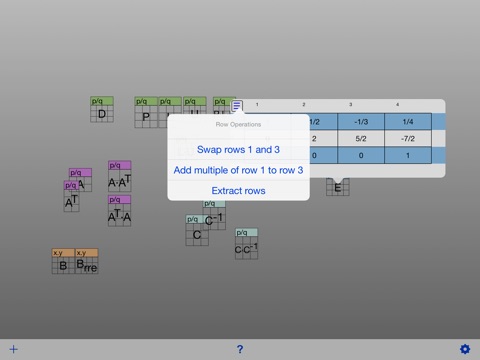 • or better yet... in editing mode, highlight rows and instruct the app to carry out the elementary row operations yourself! Learn the essence of the algorithm without the hassle of carrying out the arithmetic details.