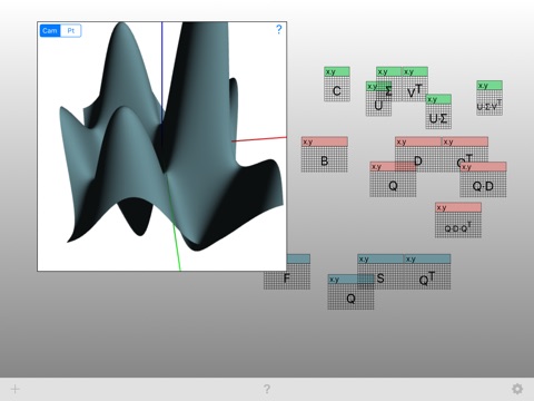 Touch Matrix Algebra Professional Version not only comes with all of the in-app features of Touch Matrix Algebra unlocked — unlimited matrix sizes, 3D graphing — it adds, in addition to all the basic linear algebra operations, the most important advanced algorithms from advanced numerical linear algebra: orthogonal transforms, reductions and iterative matrix decompositions like QR factorization (declared the most important algorithm of the 20th century), symmetric eigensystem determination and singular value decomposition.